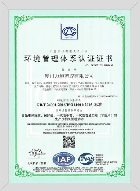 廈門(mén)力迪塑膠有限公司,成立于2005年是一家產(chǎn)業(yè)鏈完整、已有專(zhuān)業(yè)研發(fā)設(shè)計(jì)團(tuán)隊(duì)、生產(chǎn)、銷(xiāo)售及品牌運(yùn)營(yíng)為一體的現(xiàn)代化企業(yè)。公司主營(yíng):一次性餐飲耗品與一次性醫(yī)療耗品;具體產(chǎn)品有:一次性PE手套、保鮮袋、保鮮膜、環(huán)保垃圾袋、纏繞膜、PS航空杯、紙杯、錫紙以及醫(yī)用防護(hù)口罩,醫(yī)用外科口罩,醫(yī)用創(chuàng)可貼,醫(yī)用敷貼,醫(yī)用手套等一次性耗品。車(chē)間按照國(guó)家“QS標(biāo)準(zhǔn)化進(jìn)行規(guī)劃設(shè)計(jì),運(yùn)營(yíng)面積達(dá)35000+平方米,擁有專(zhuān)業(yè)生產(chǎn)線(xiàn)400余條,月產(chǎn)量3900余噸。